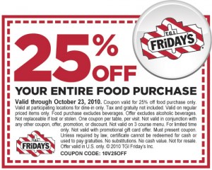 TGI Fridays 25% off Coupon